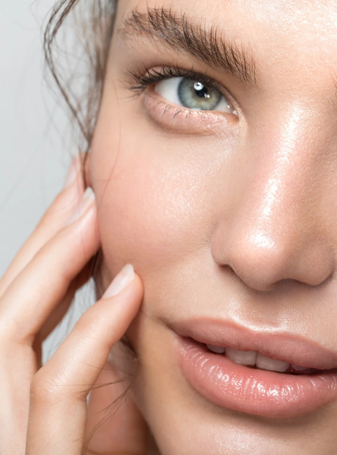 Dieser Look lebt von einer optimal gepflegten Haut. Glow ist kein Glitzer, sondern ein natürlicher, lichtreflektierender Schimmer, der durch Feuchtigkeit, glättende Wirkstoffe und sorgfältige Hautvorbereitung entsteht.